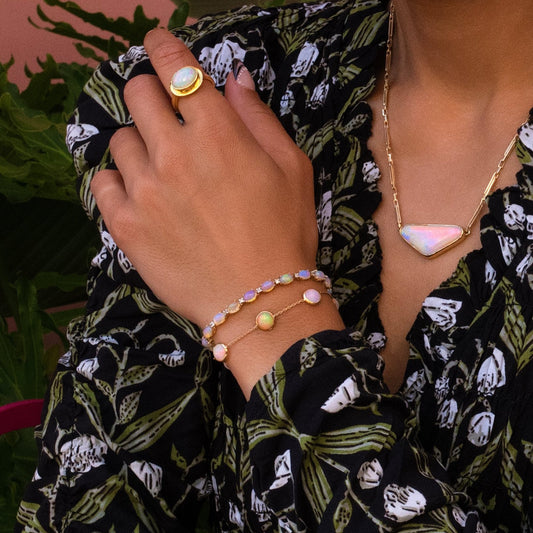 Bezel Opal Station Bracelet in 18K Yellow Gold