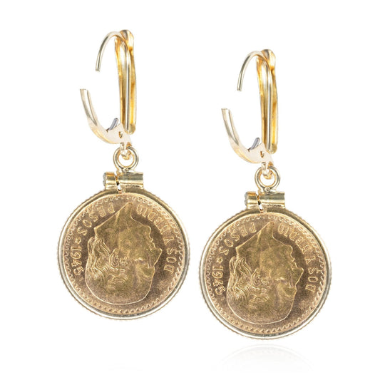1945 Mexican Dos Y Medio Coin Earrings in 22K/14K Gold