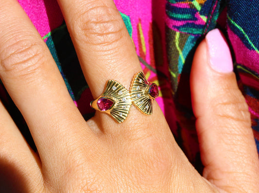Botticelli Birth of Venus Pink Tourmaline & Diamond Ring in 14K Yellow Gold