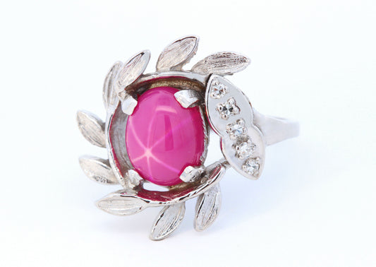 Art Deco Star Ruby & Diamond Wreath Ring in 14K White Gold