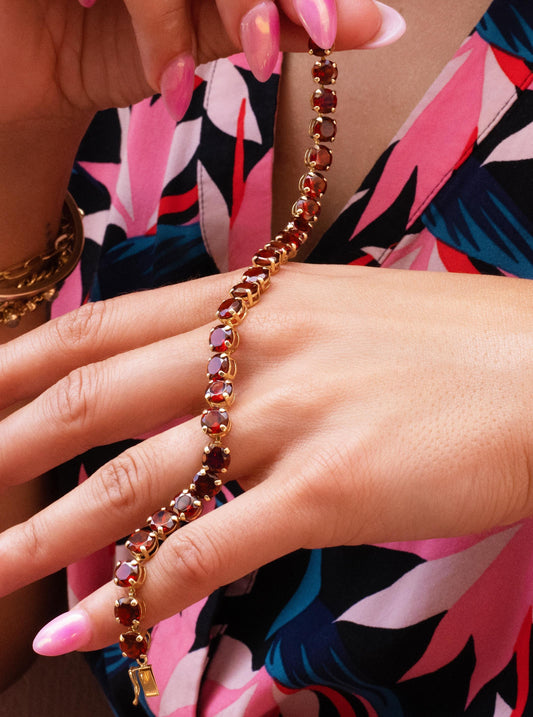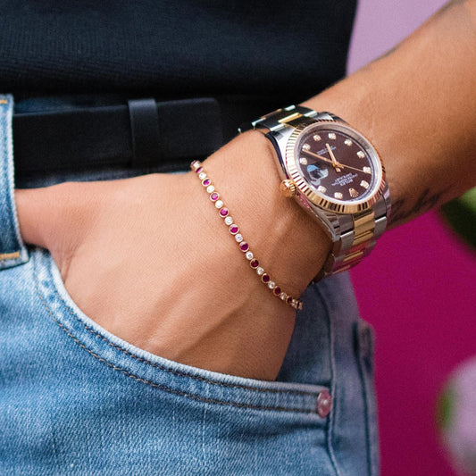 Ruby & Diamond Bezel Set Tennis Bracelet in 14K Yellow Gold