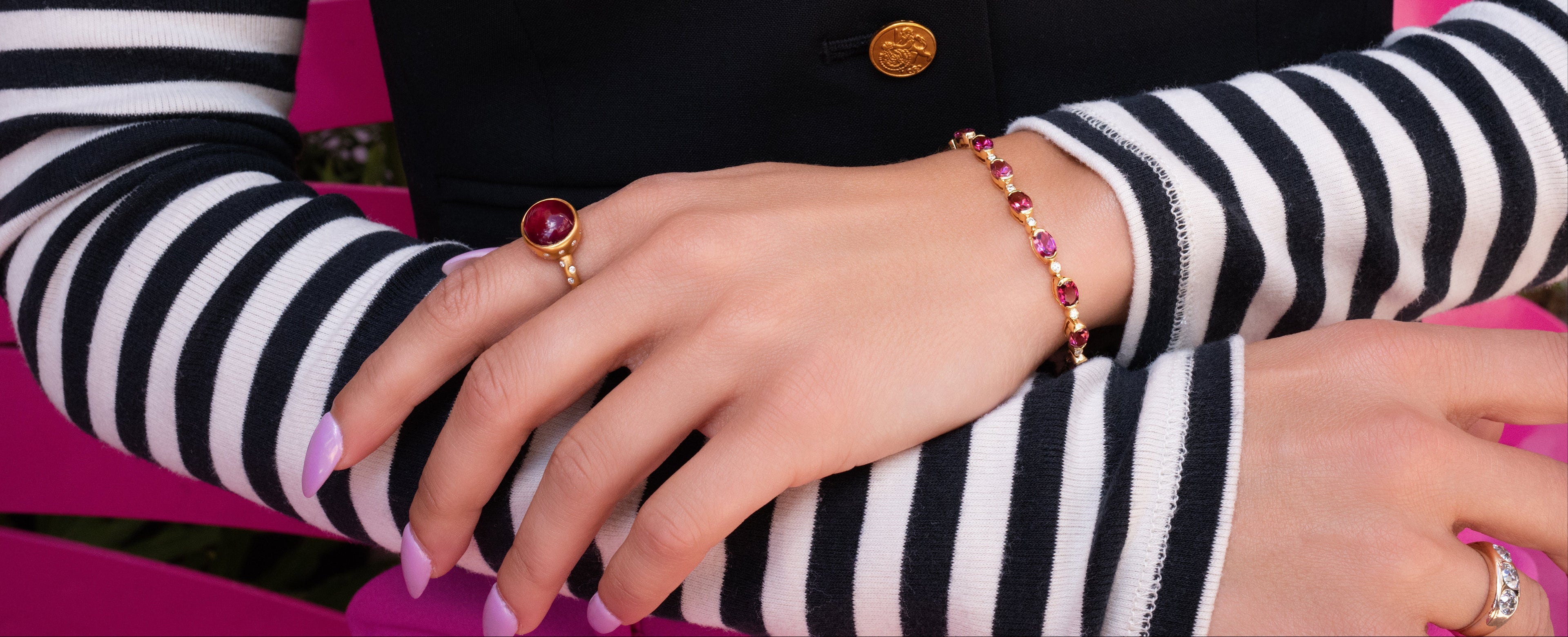 Tourmaline & Diamond Tennis Bracelet in 18K Yellow Gold