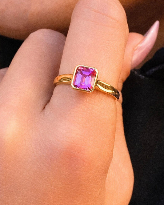 Pink Sapphire Dainty Bezel Ring in 18K Yellow Gold
