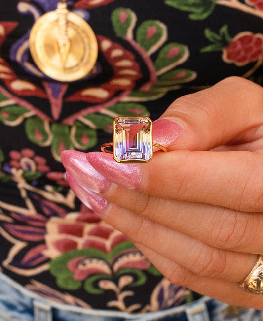 Minimalist Ametrine Bezel Ring in 14K Yellow Gold