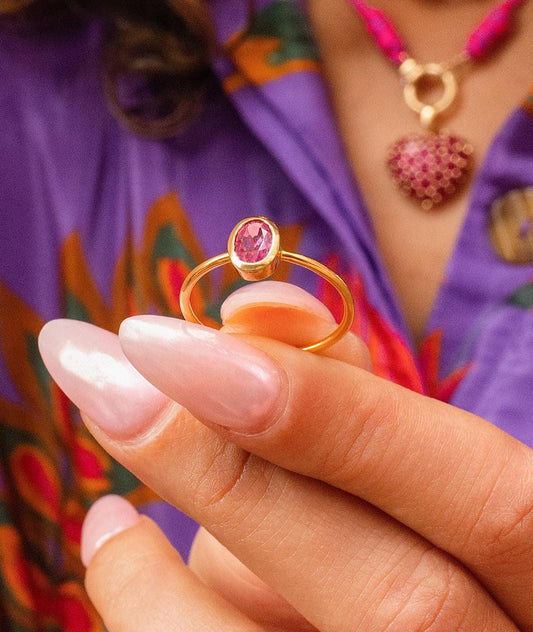 Pink Tourmaline Bezel Ring in 18K Yellow Gold