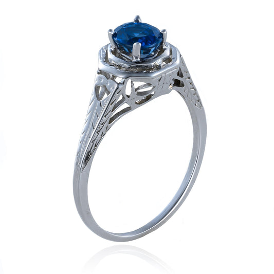 Art Deco Sapphire Filigree Ring in 20K White Gold