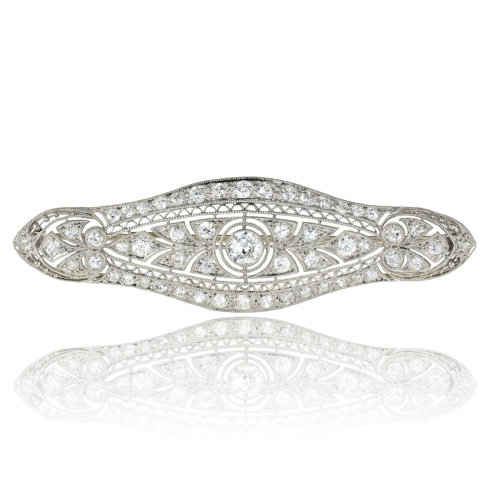 ANTIQUE Art Deco Old European Cut Diamond Brooch in Platinum