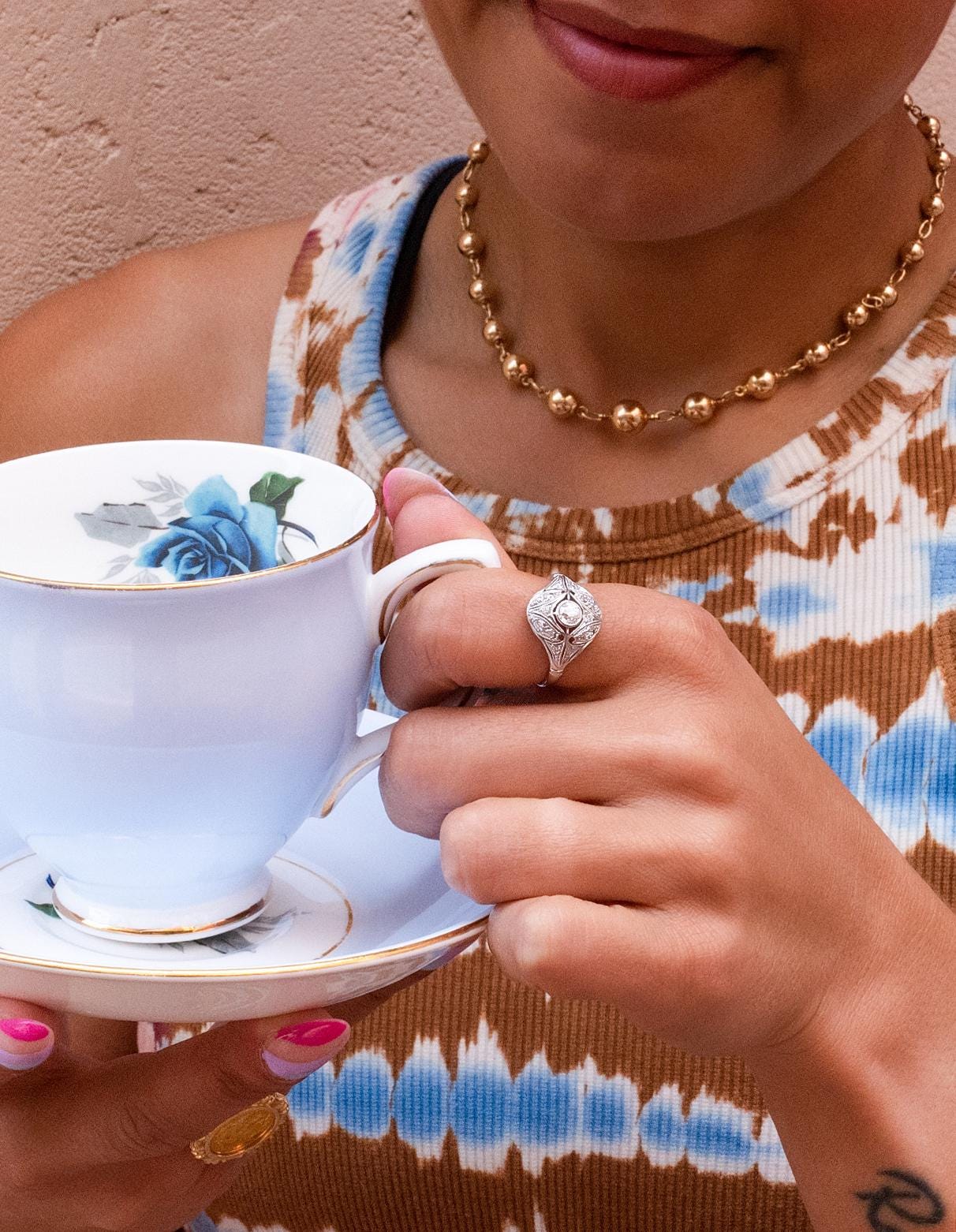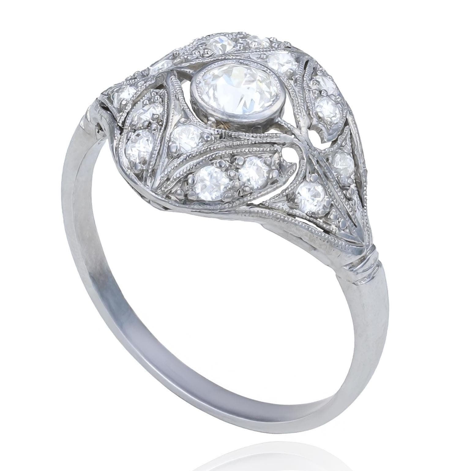 Edwardian Old European Cut Domed Filigree Ring in Platinum