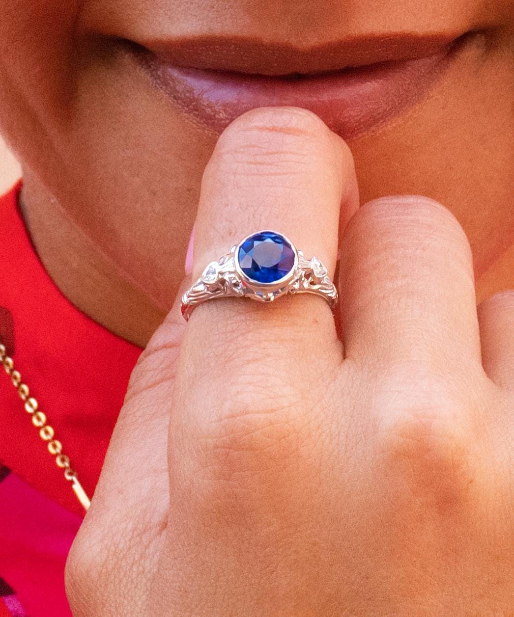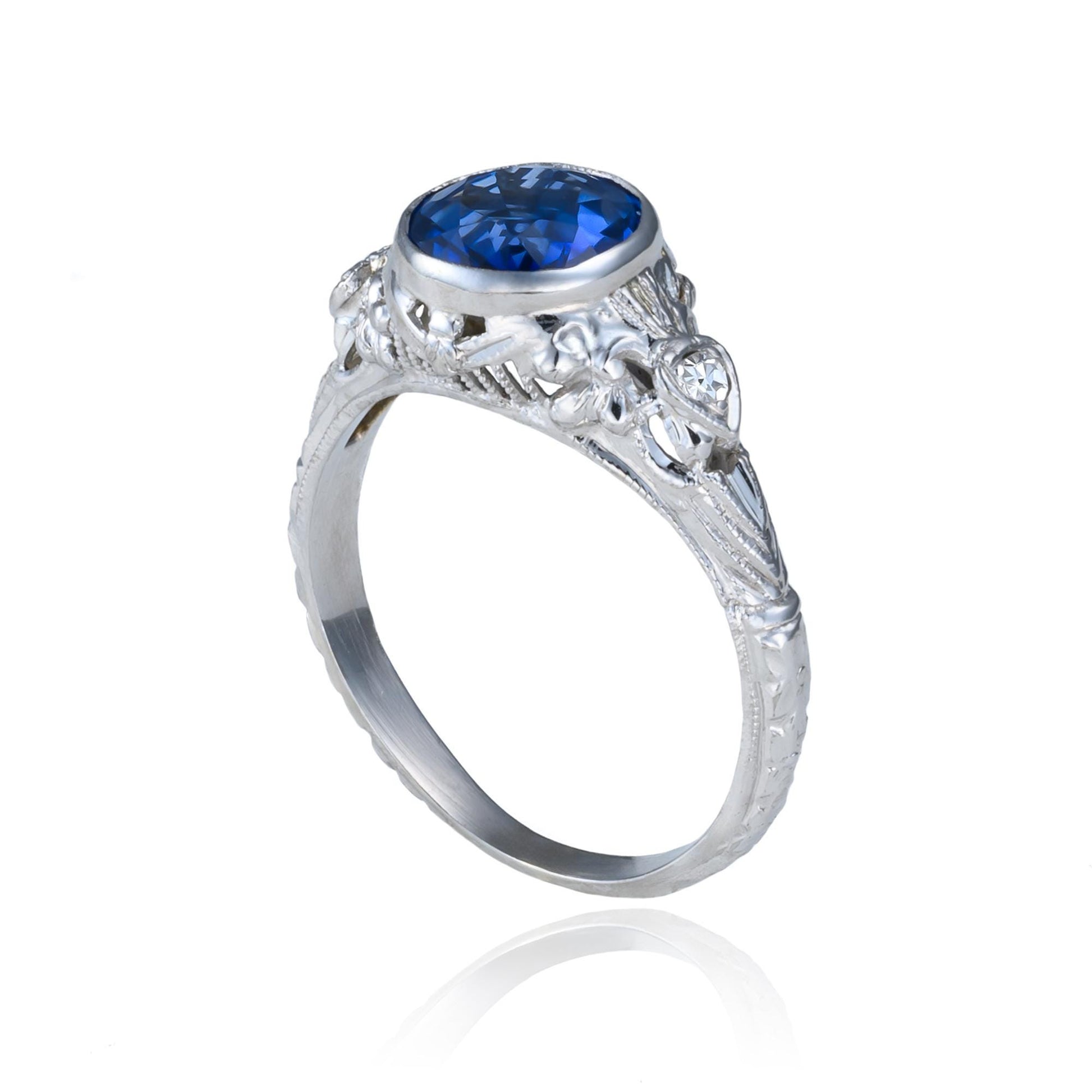 Edwardian Sapphire & Diamond Ring in 18K White Gold