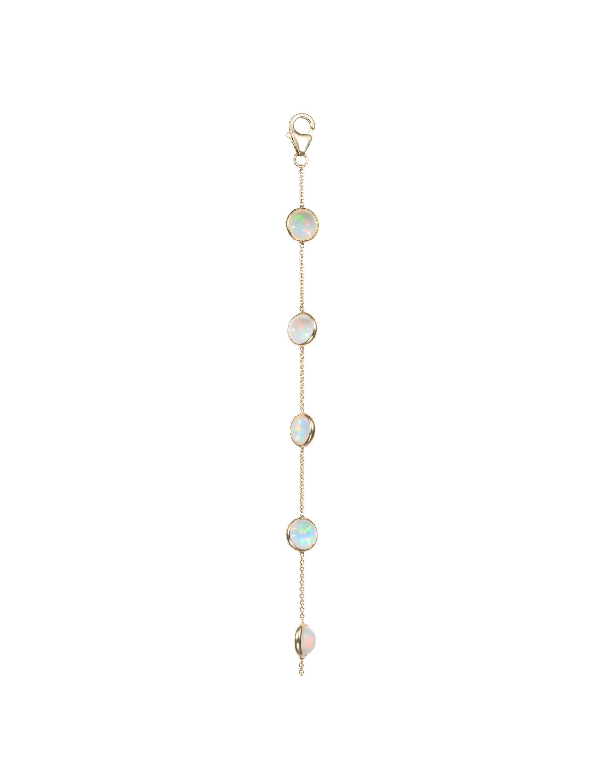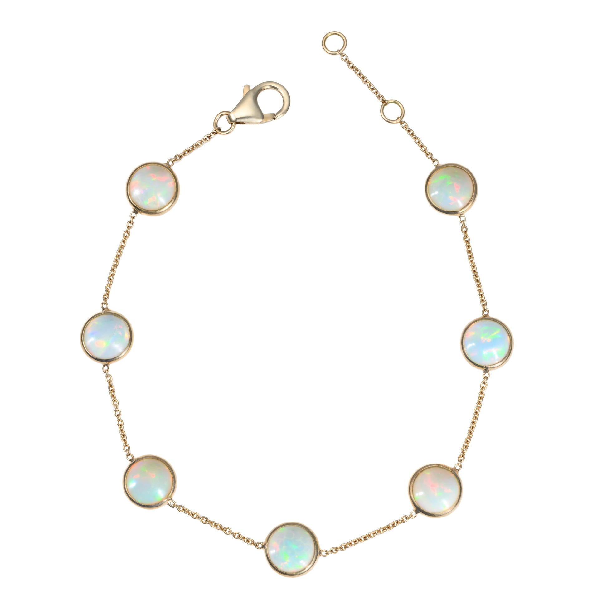 A one-of-a-kind Village Jewelry bracelet waiting for the perfect wrist! This bezel set, opal bracelet is eye-catching, unique and comfortable. Show off this 18k yellow gold chain with SEVEN opals during a special occasion and feel your best.