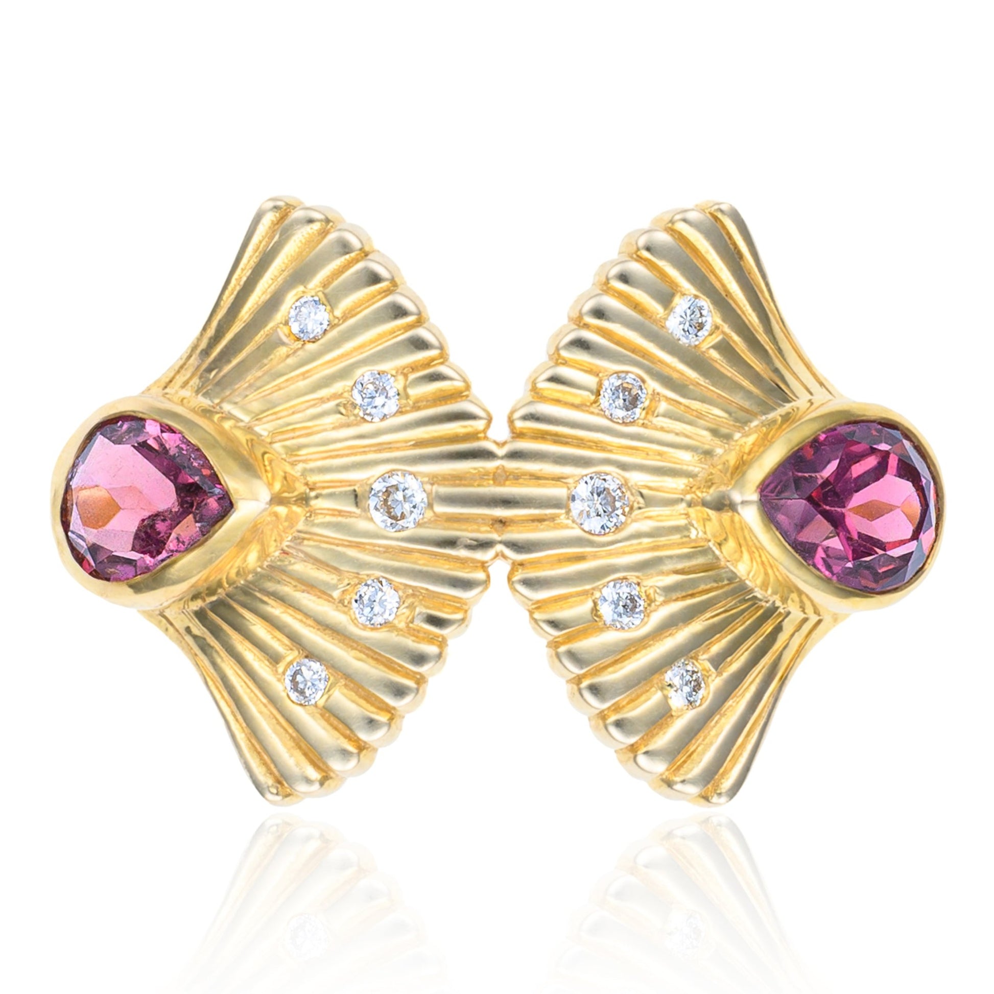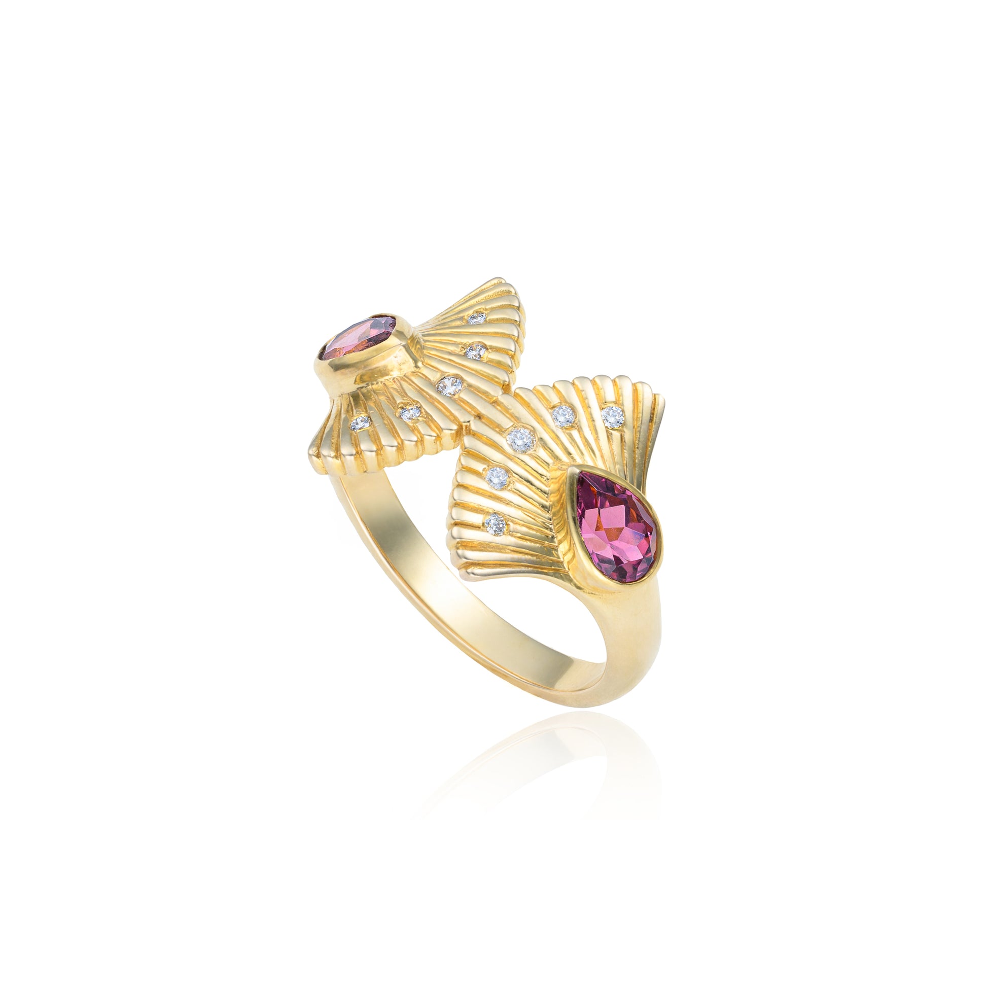 Botticelli Birth of Venus Pink Tourmaline & Diamond Ring in 14K Yellow Gold