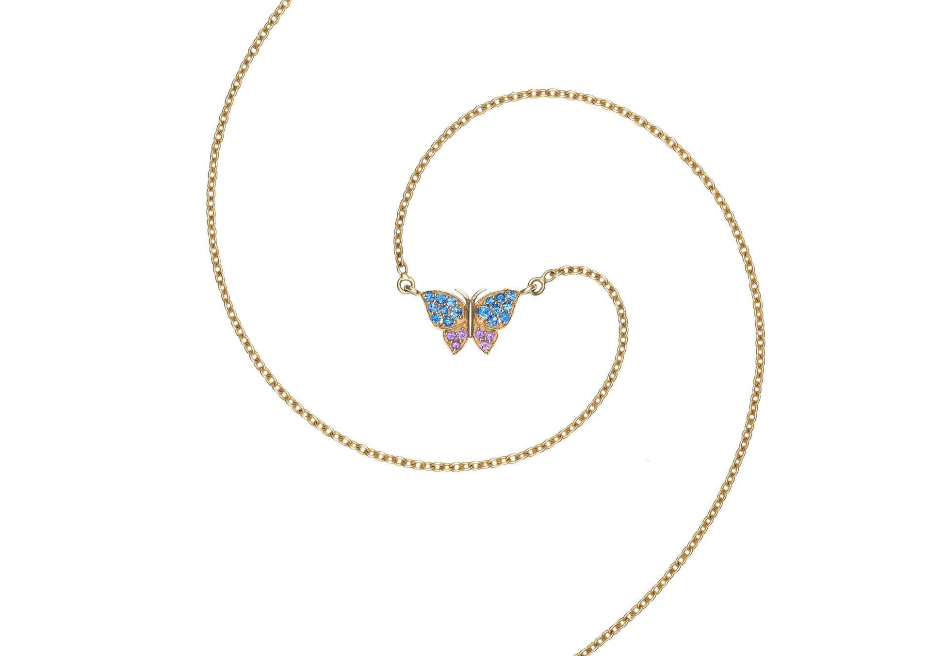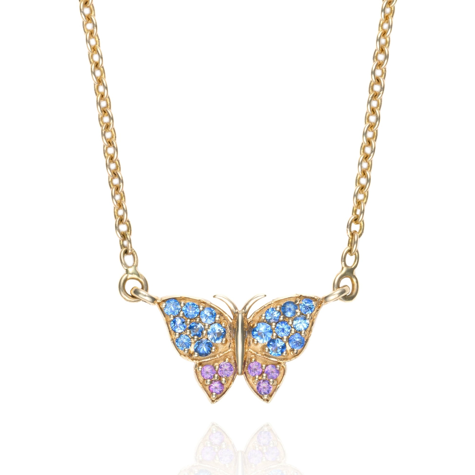 Butterfly Necklace with Blue Sapphire & Amethyst in 14K Yellow Gold