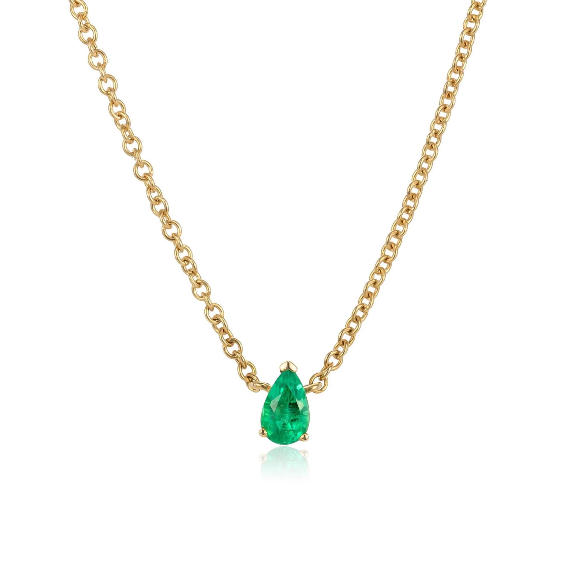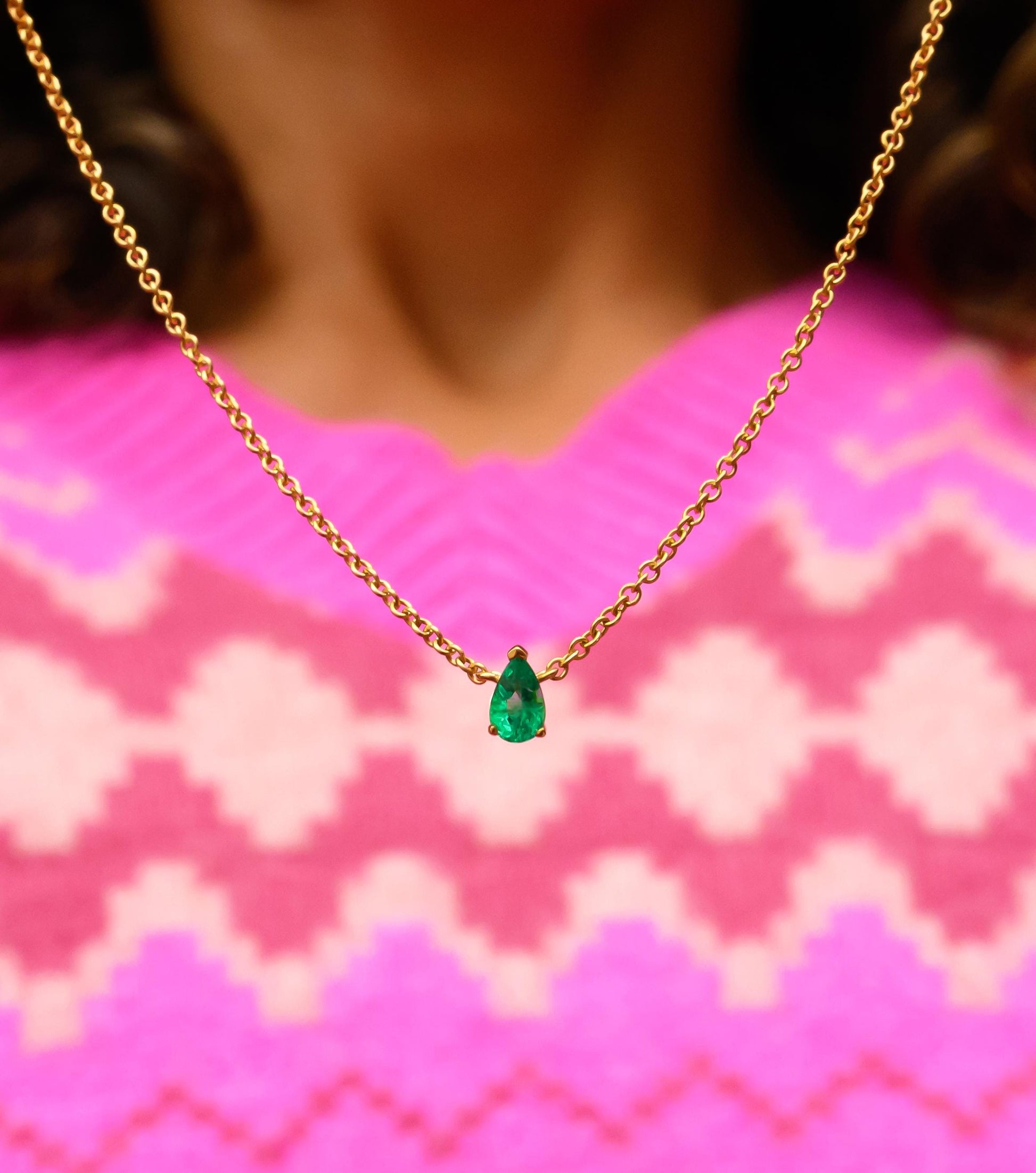 Dainty Pear Shaped Emerald Necklace in 14K Yellow Gold