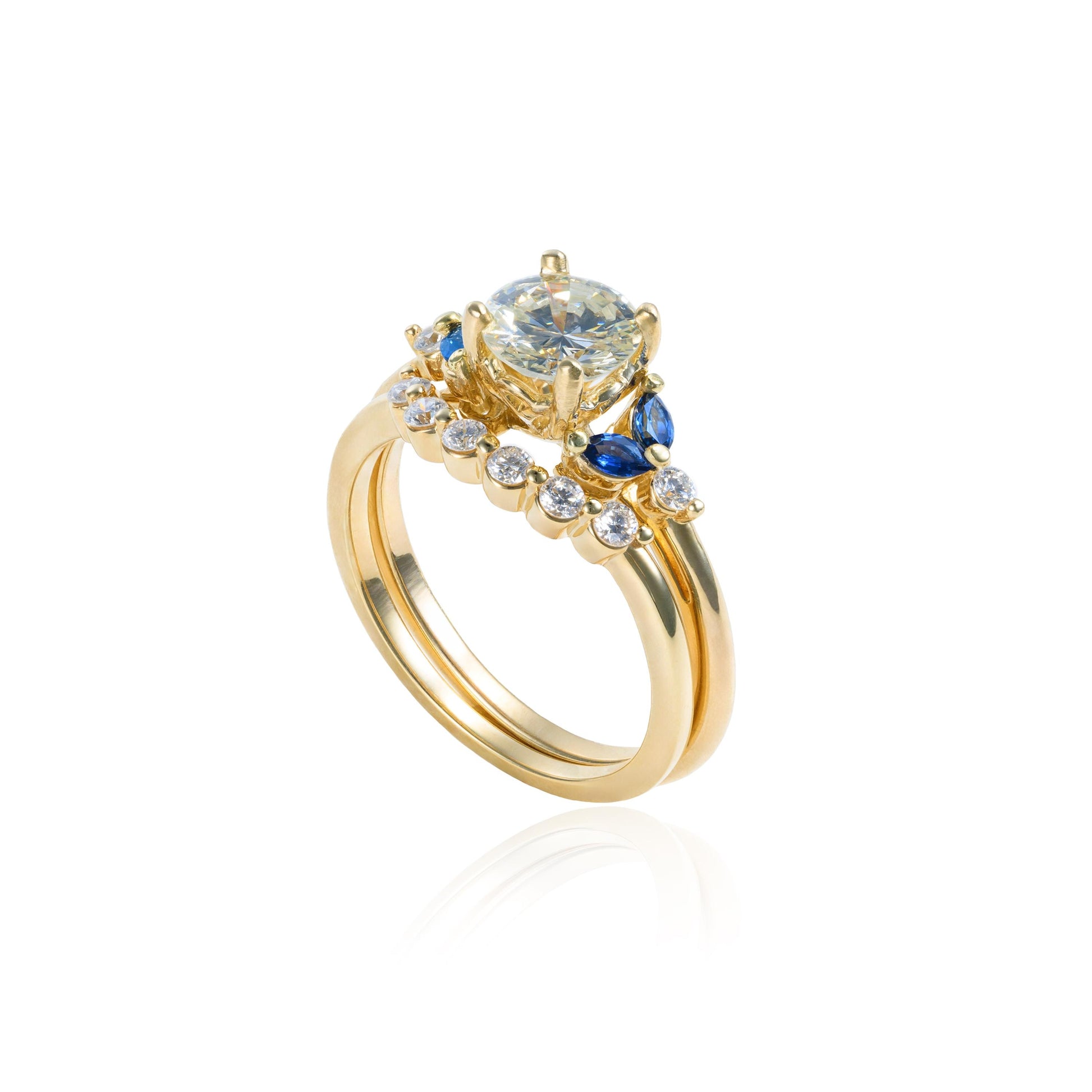 Diamond & Sapphire Floral Inspired Bridal Set in 14K Yellow Gold