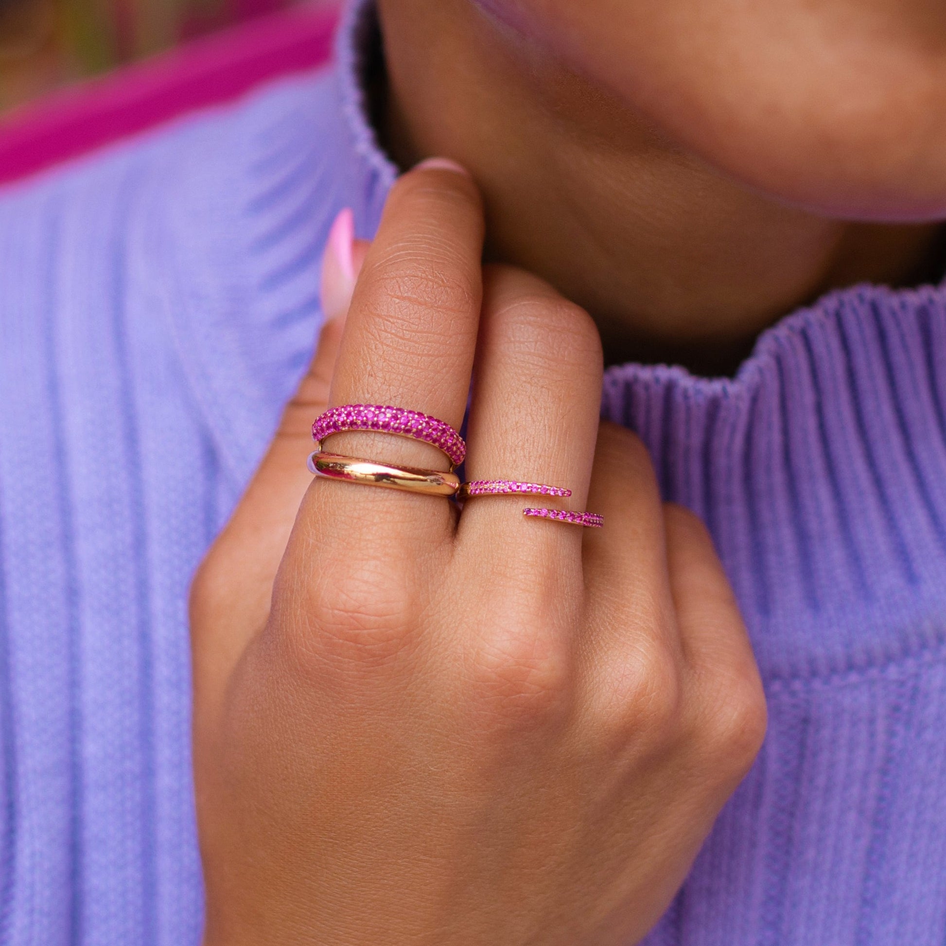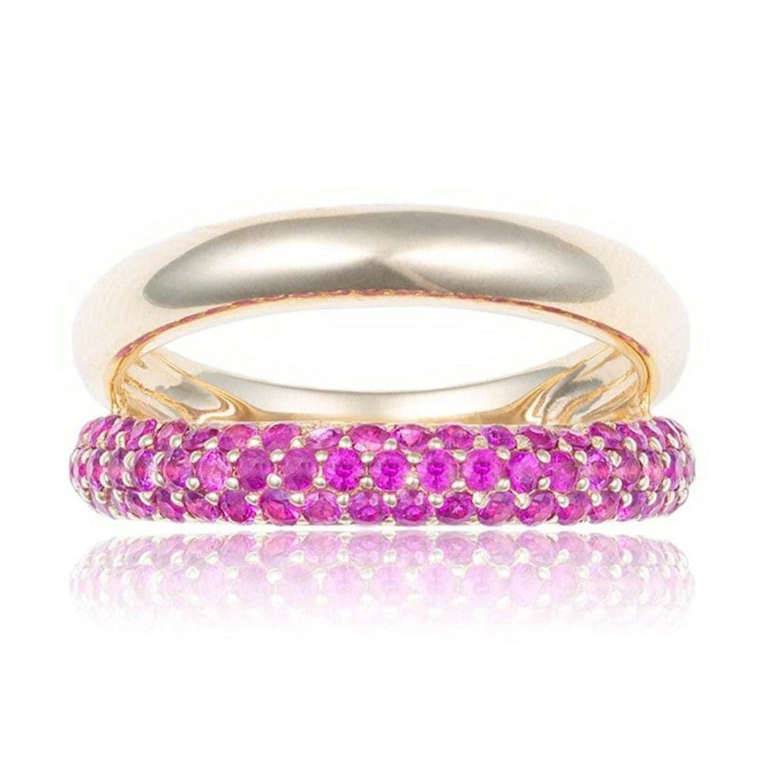 Double Band Pavé Ruby Ring in 14K Yellow Gold