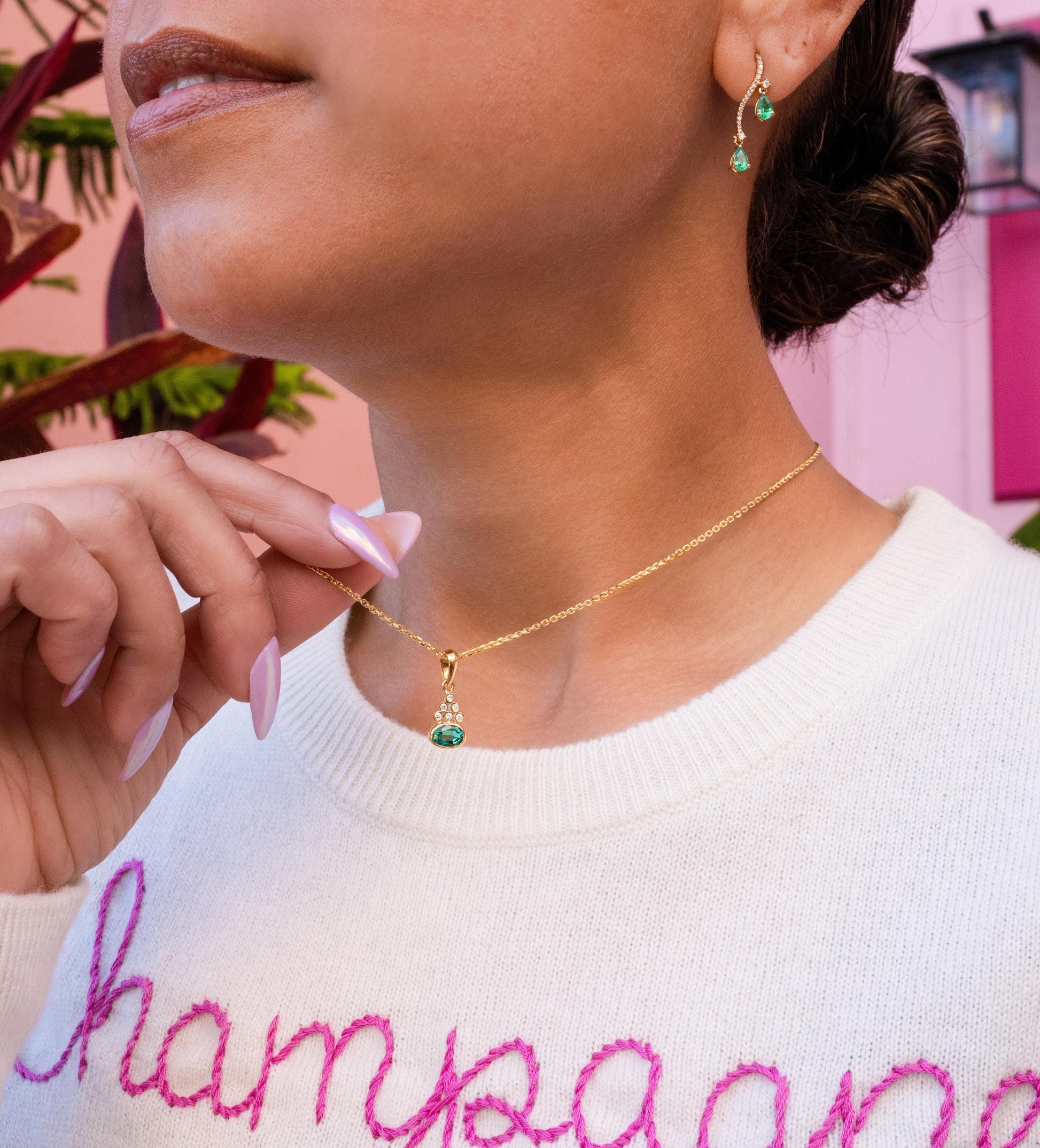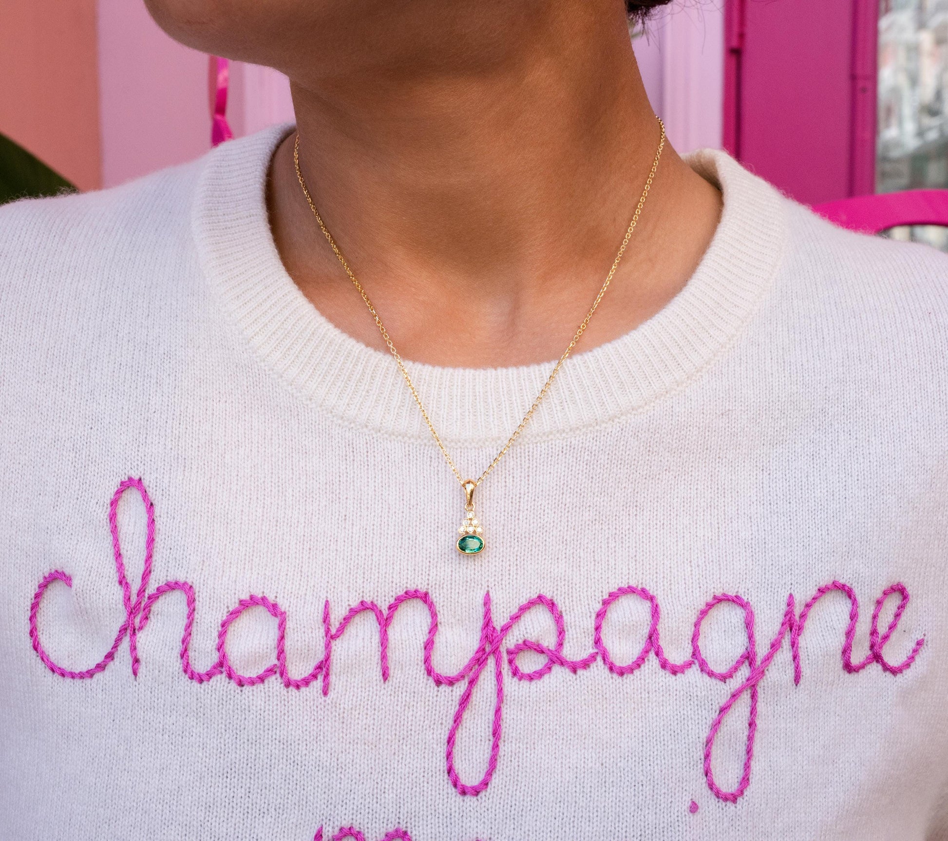 Emerald & Diamond Bezel Pendant in 18K Yellow Gold