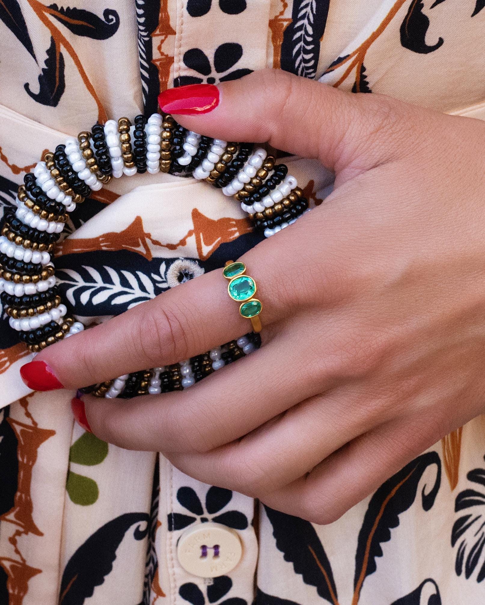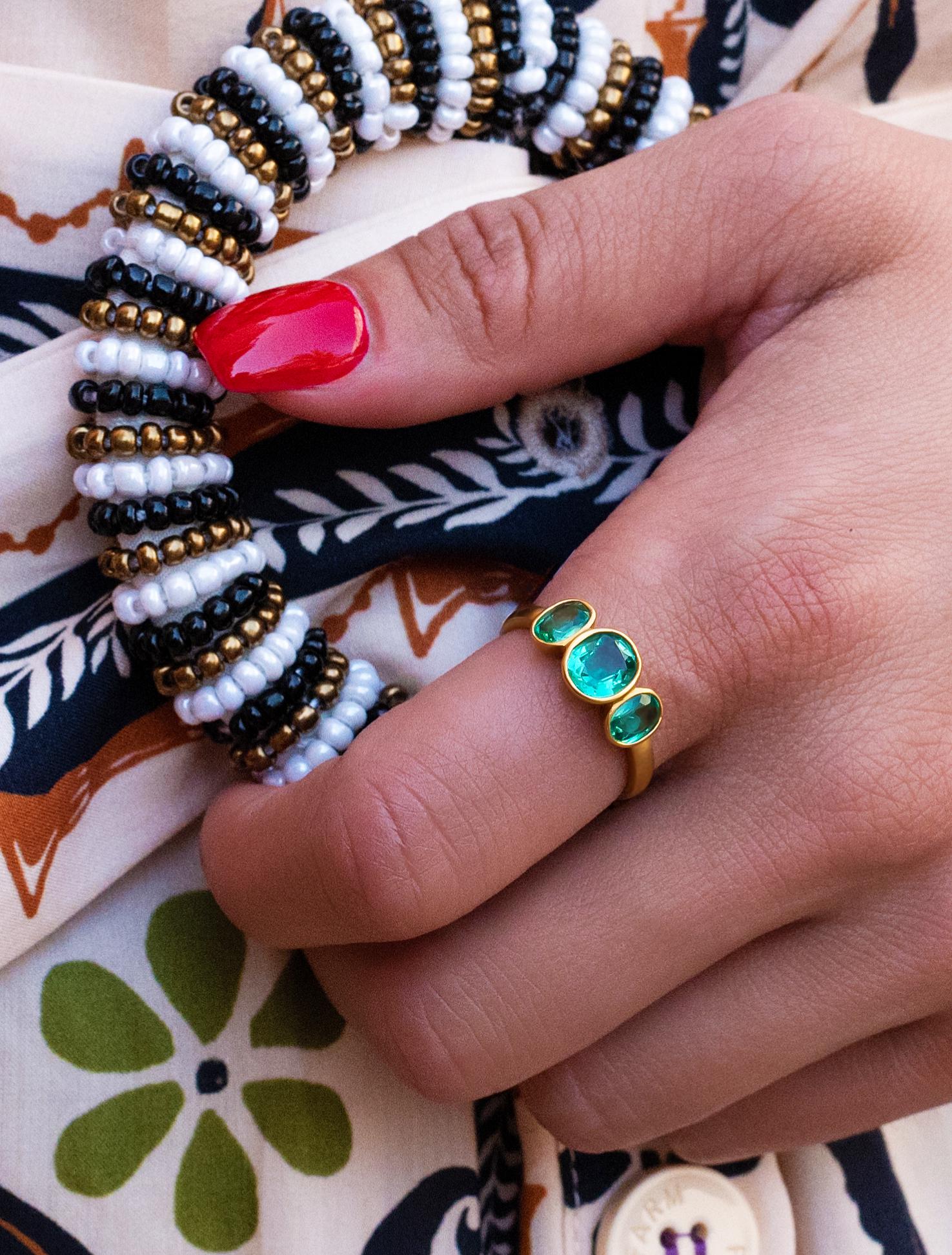 Emerald Triple Bezel Ring in 18K Yellow Gold