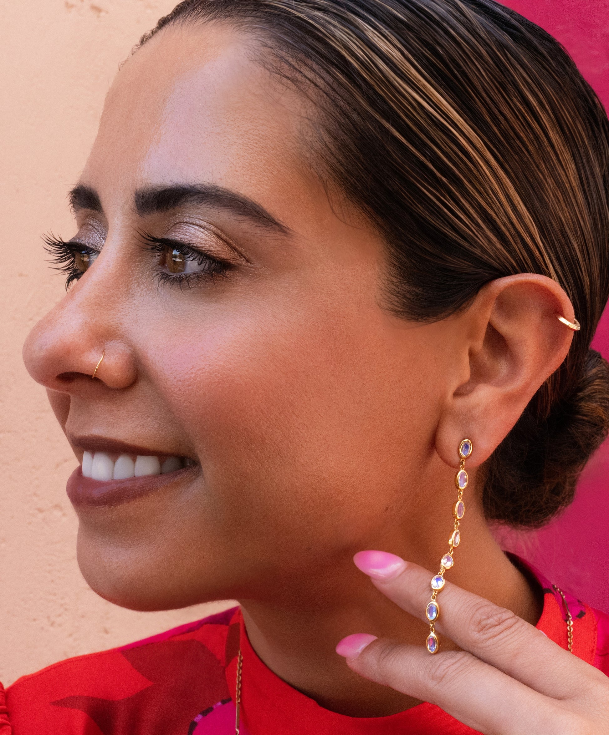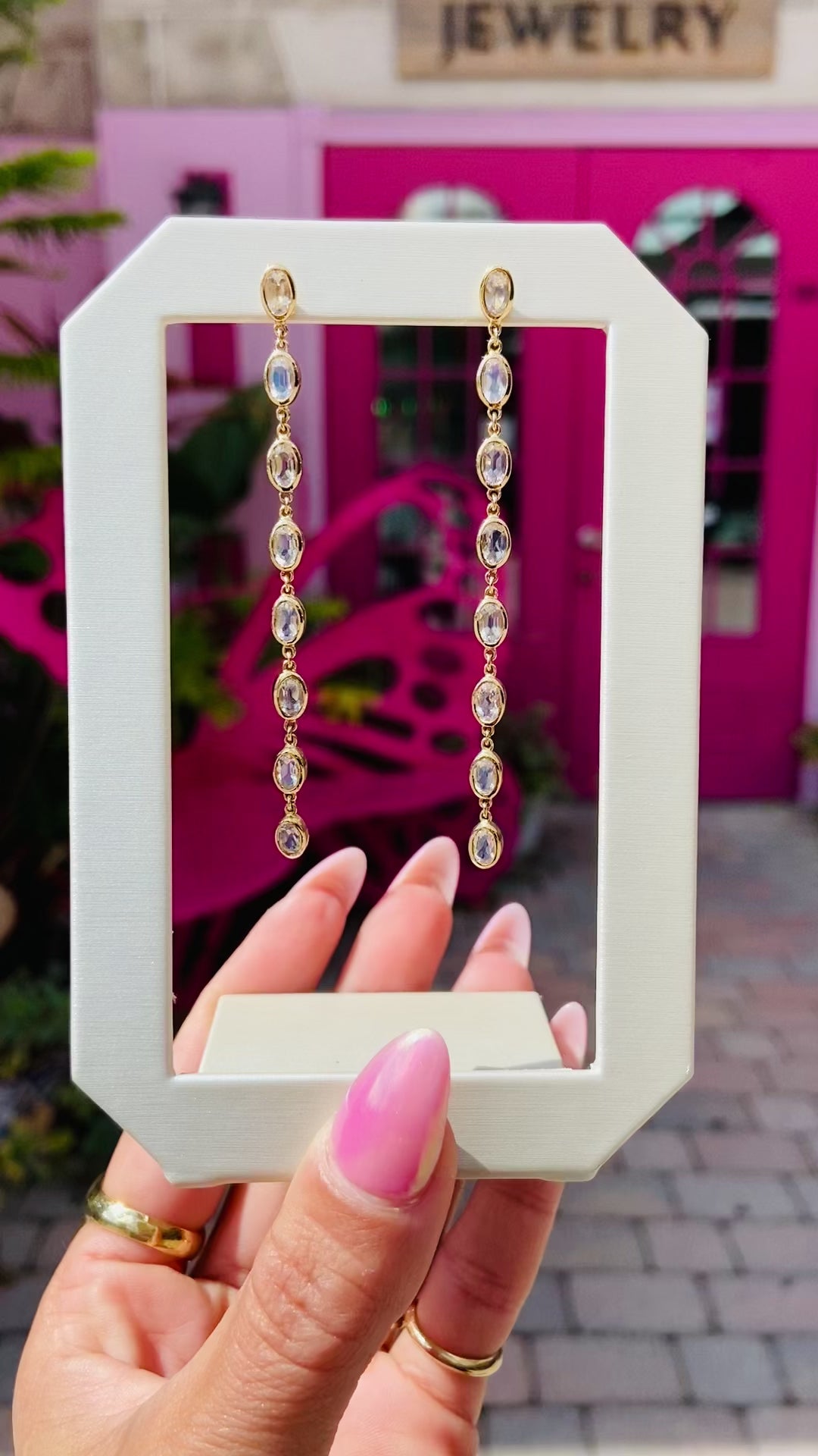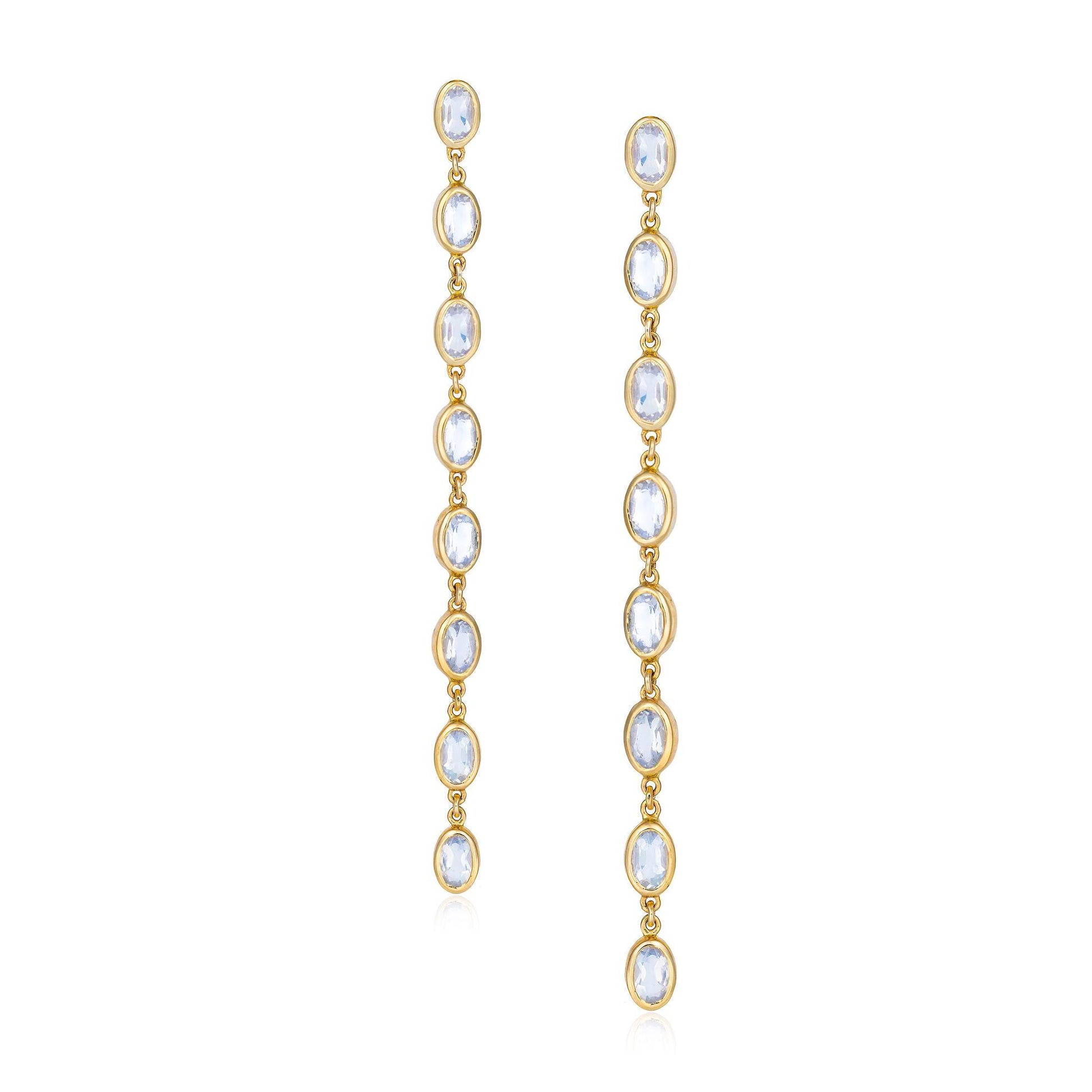 Moonstone Bezel Drop Earrings in 14K Yellow Gold