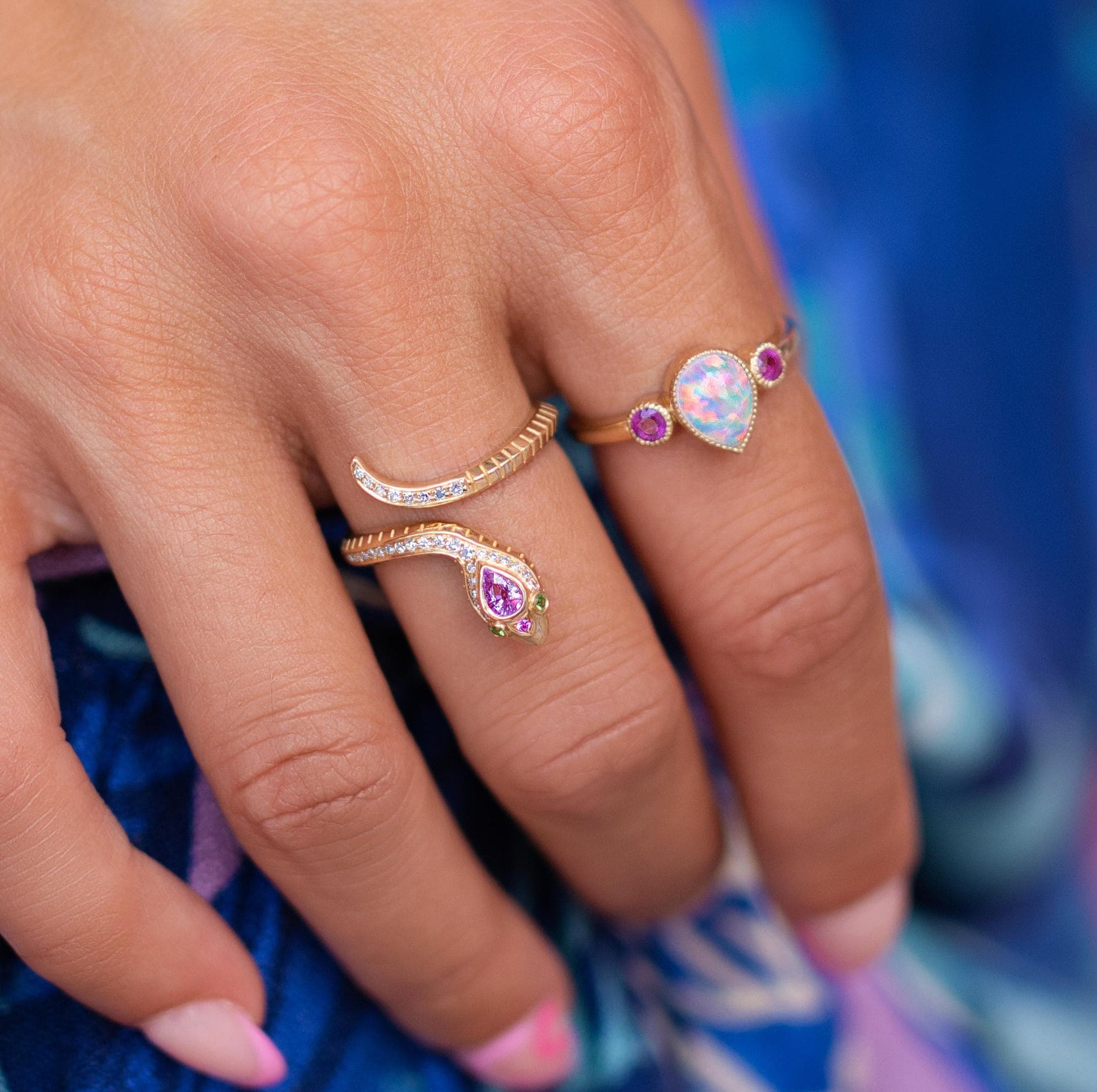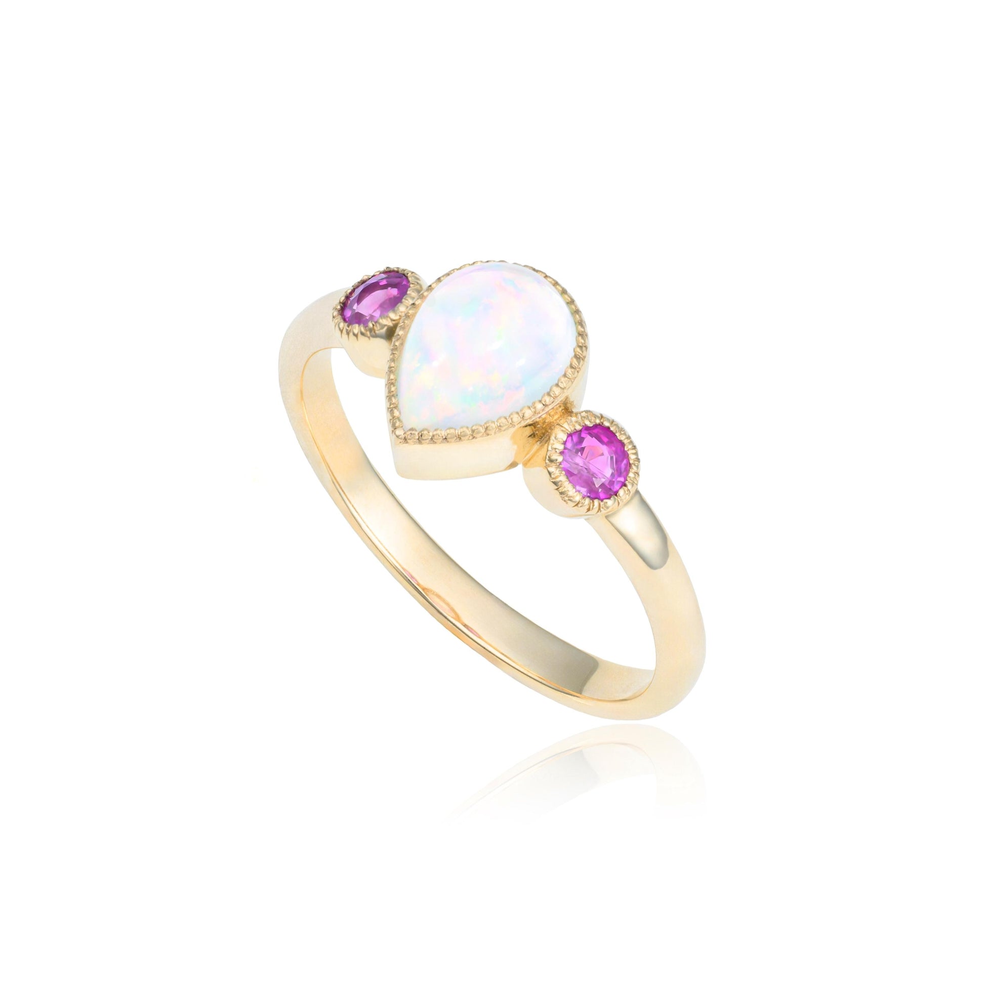 Opal & Pink Sapphire Milgrain Ring in 14K Yellow Gold