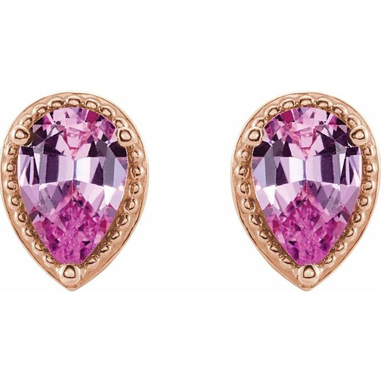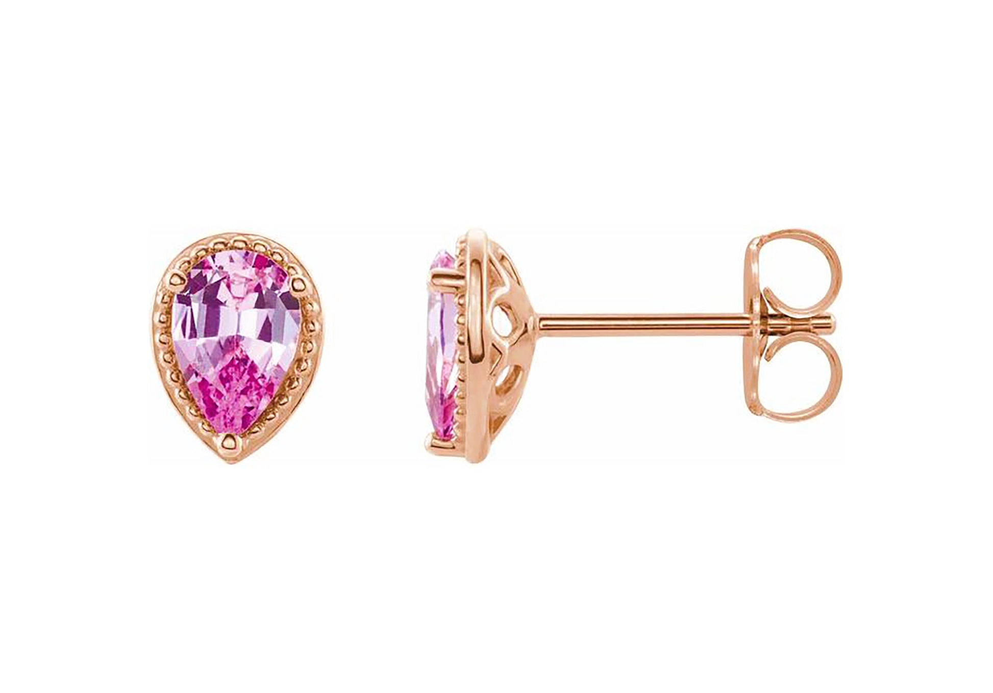 Pink Sapphire Pear Shaped Stud Earrings in 14K Rose Gold