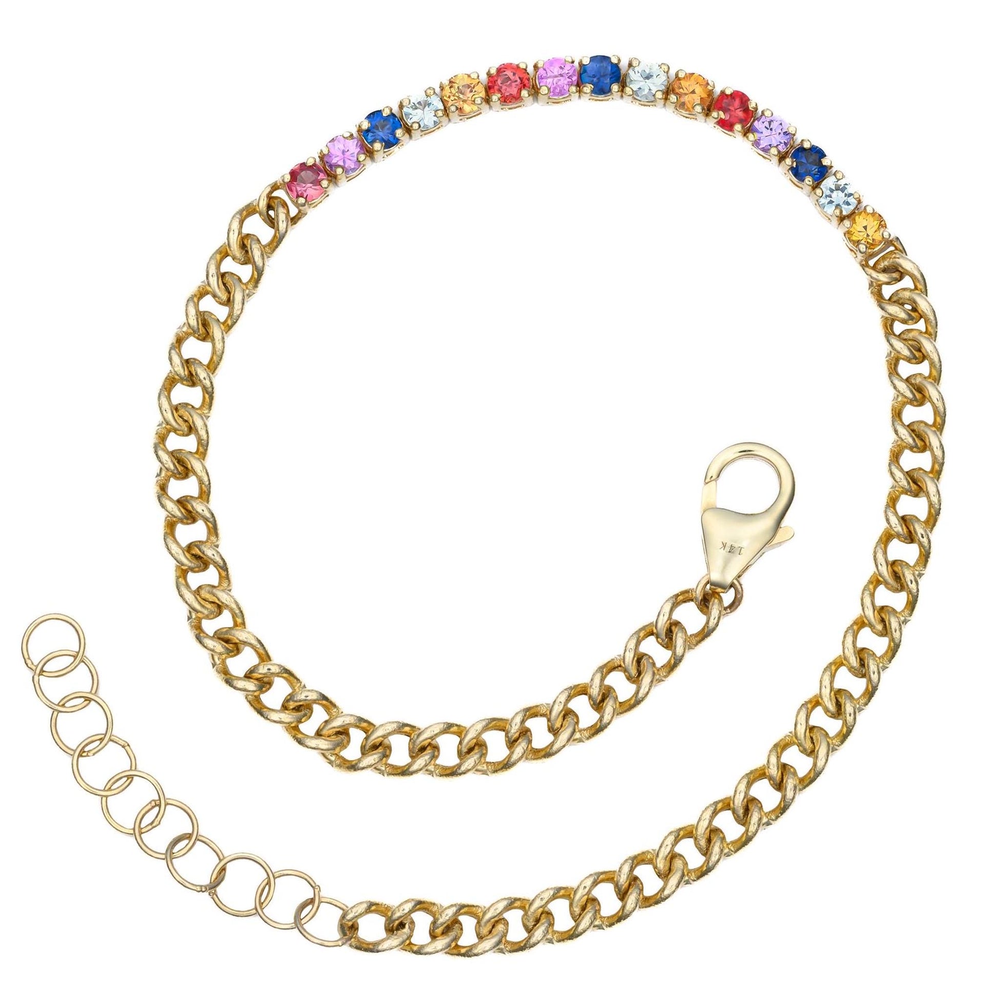 Rainbow Sapphire Curb Bracelet in 14K Yellow Gold