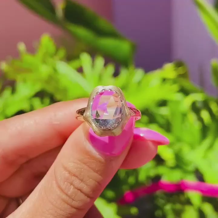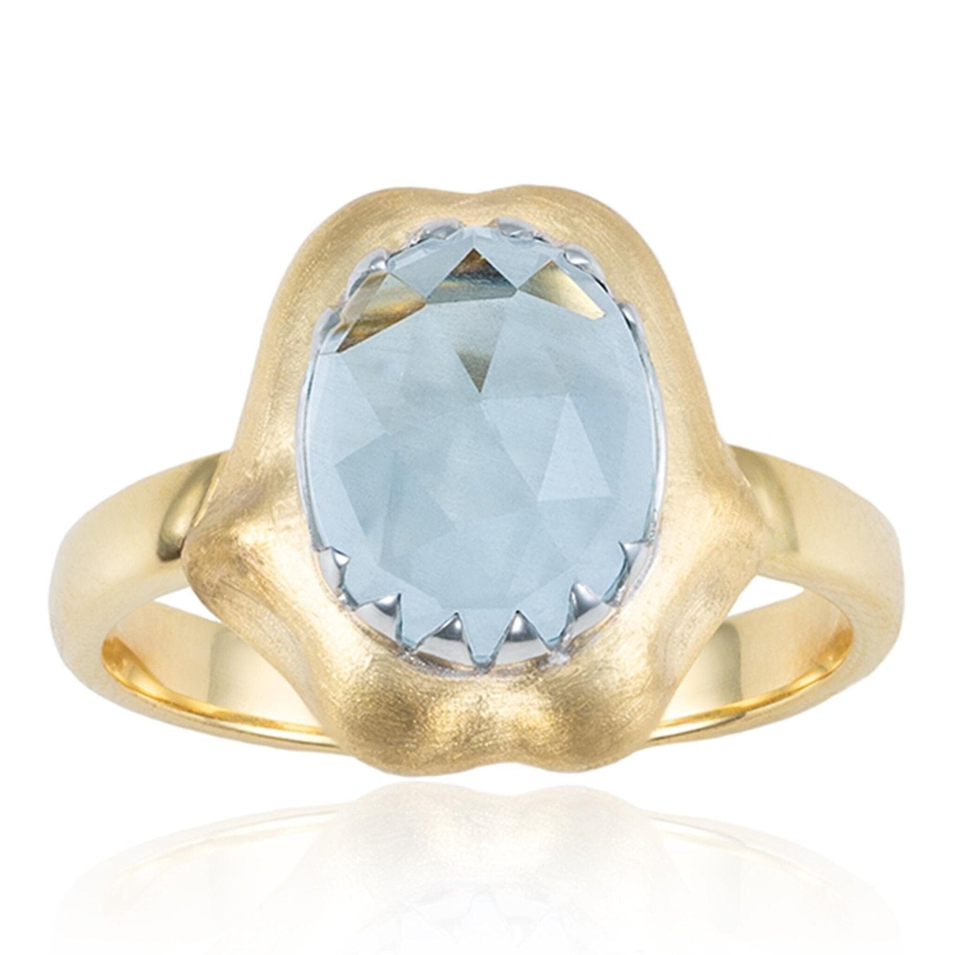 Rose Cut Aquamarine Shark Bite Ring in 14K Yellow Gold