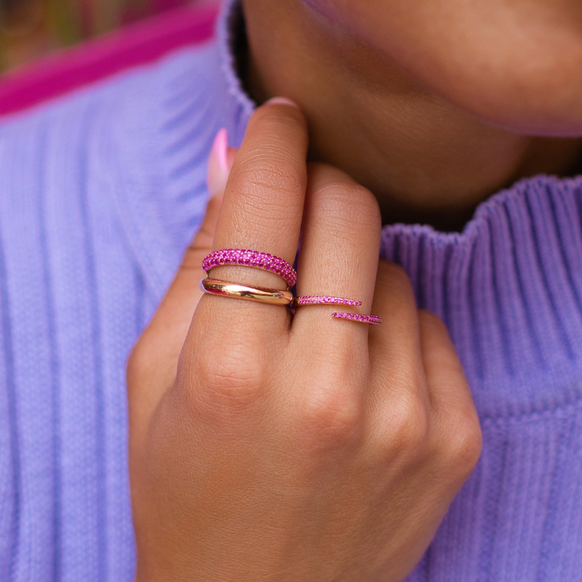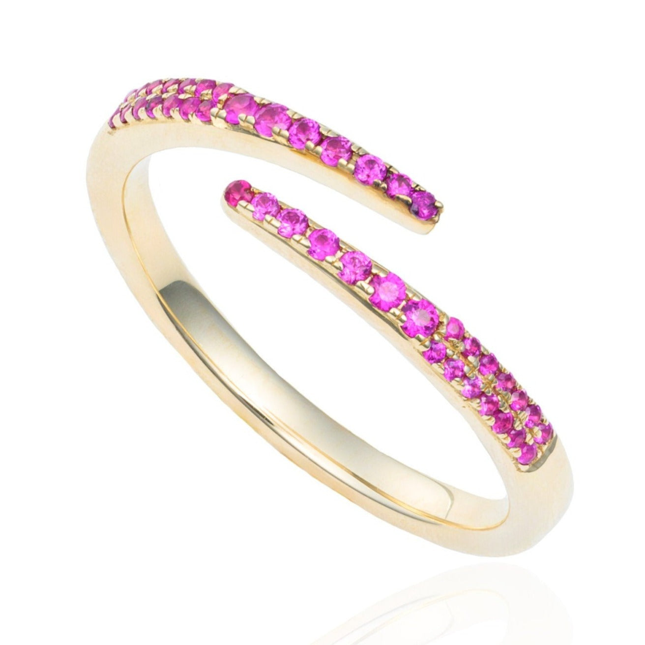 Modern, dainty, and ever so elegant perfectly describes our Ruby Bypass Band in 14K Yellow Gold.
