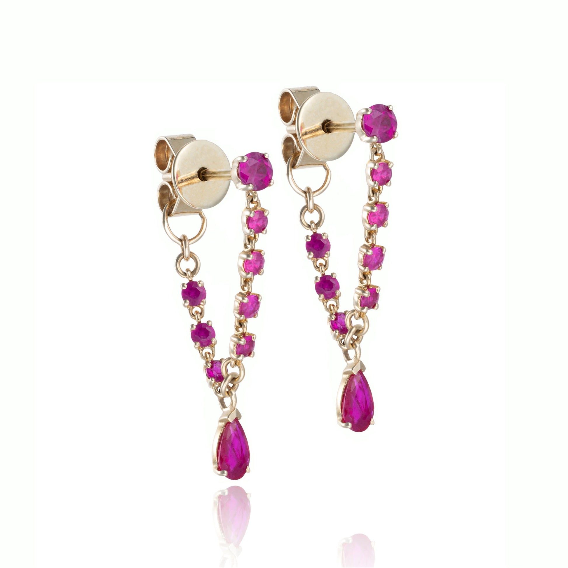 Ruby Chain Drop Huggies in 14K Yellow Gold