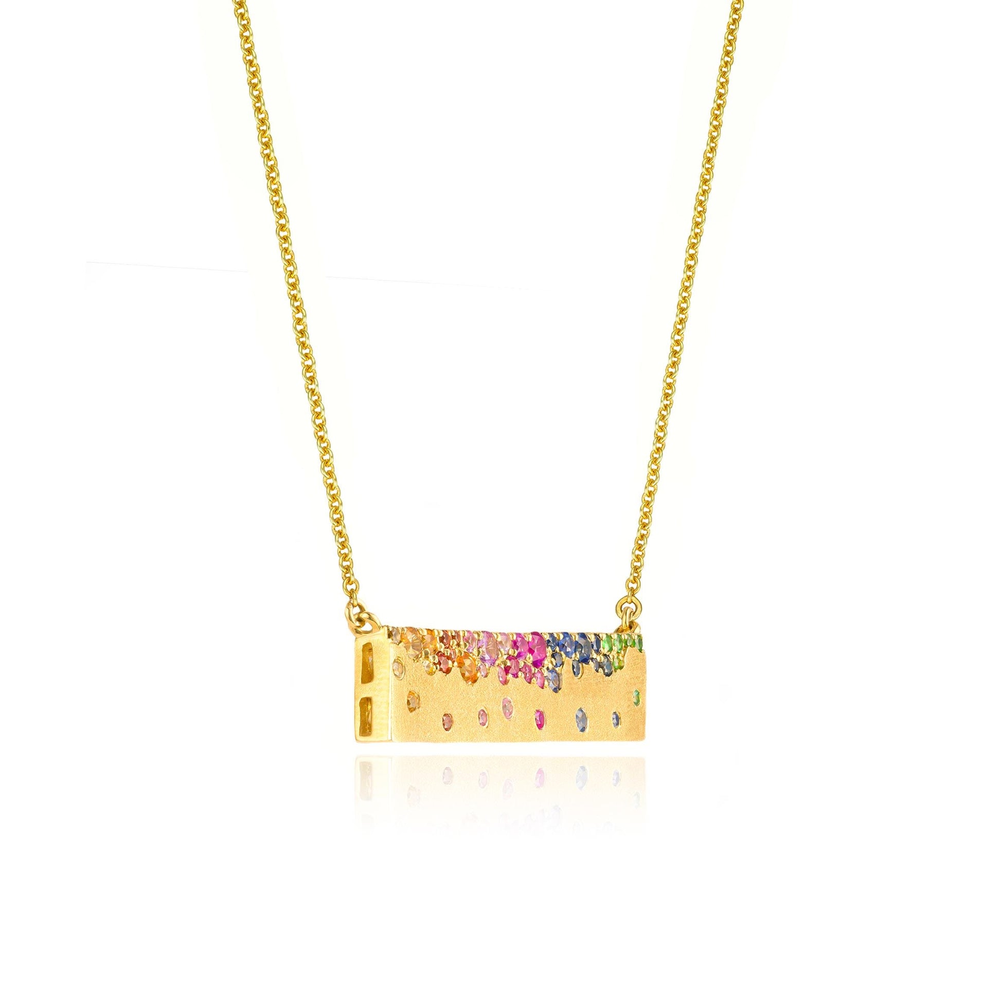 Scattered Rainbow Sapphire Bar Necklace in 14K Yellow Gold