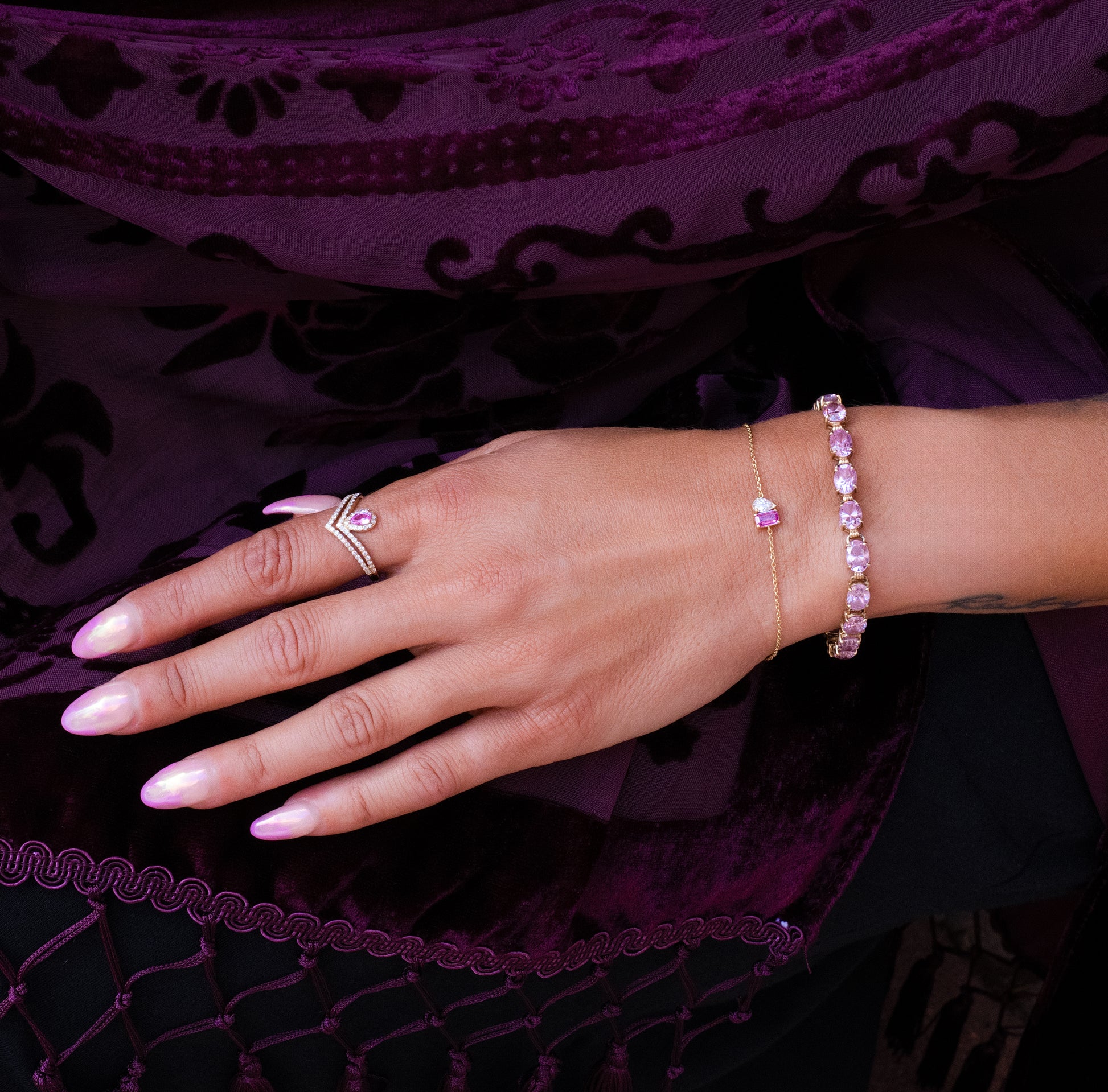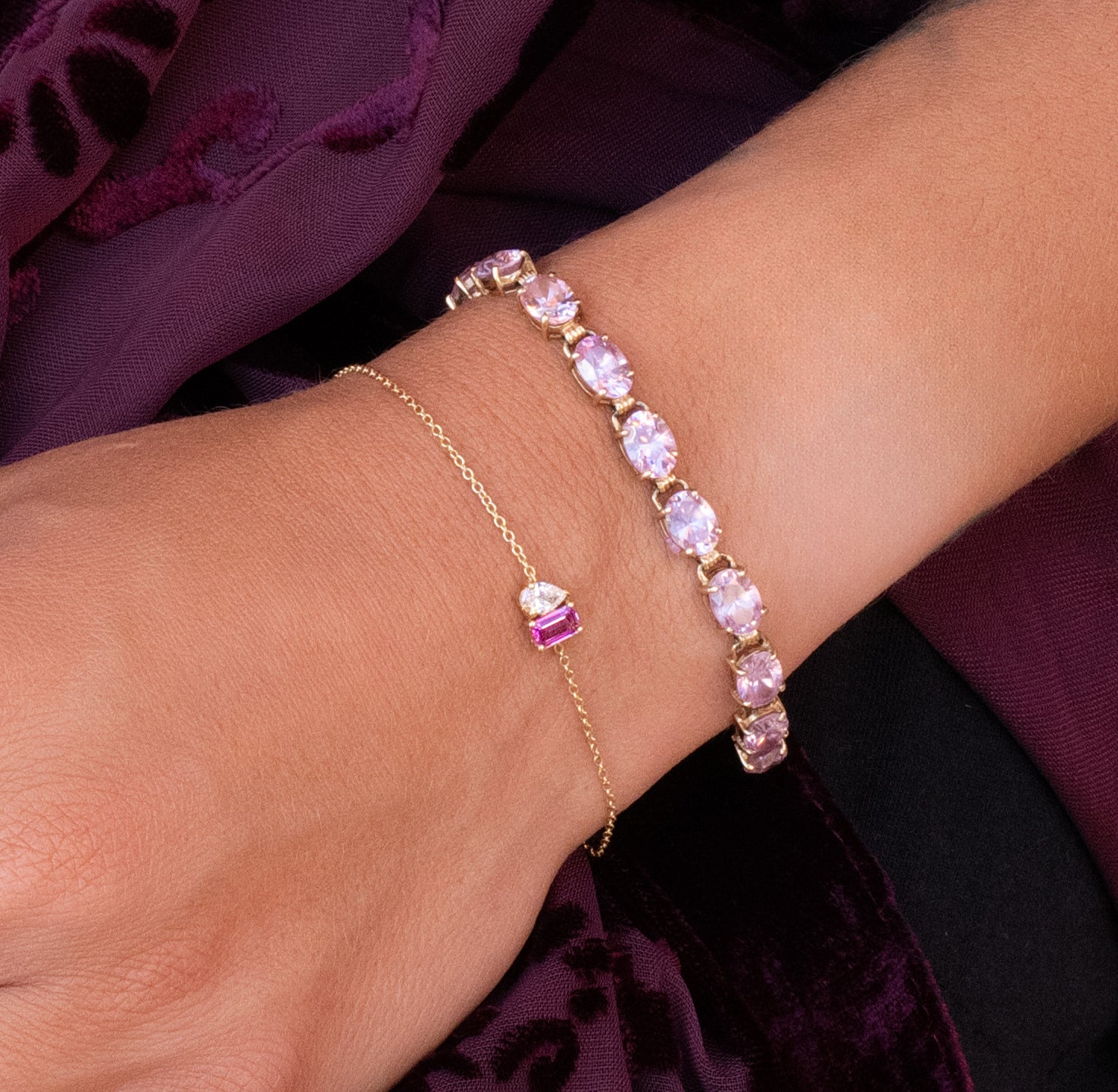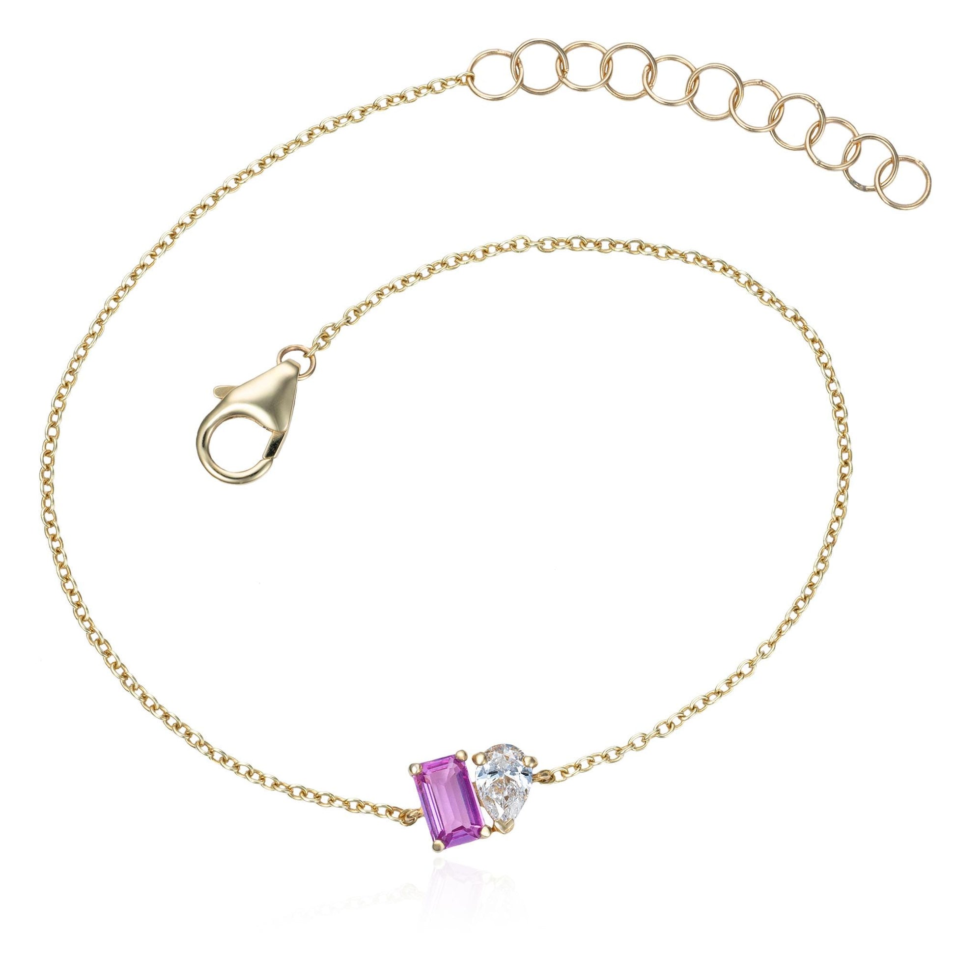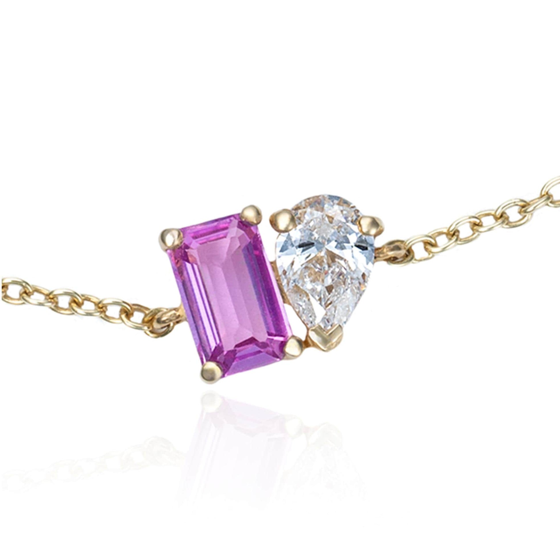 Toi et Moi Diamond & Pink Sapphire Sapphire Bracelet in 14K Yellow Gold