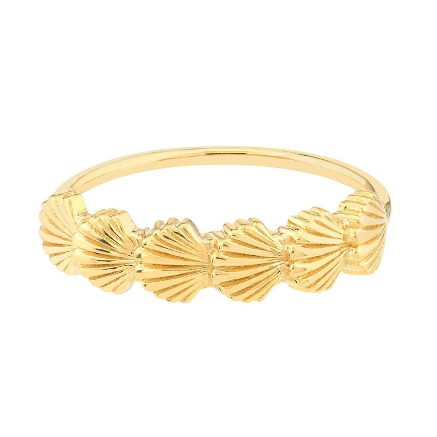 Venus Scallop Shell Stackable Ring in 14K yellow gold. This ring is perfect for wearing 247 and stacking with your other favorites! Whimsical, fun and solid gold - so you never will have to worry about tarnish.