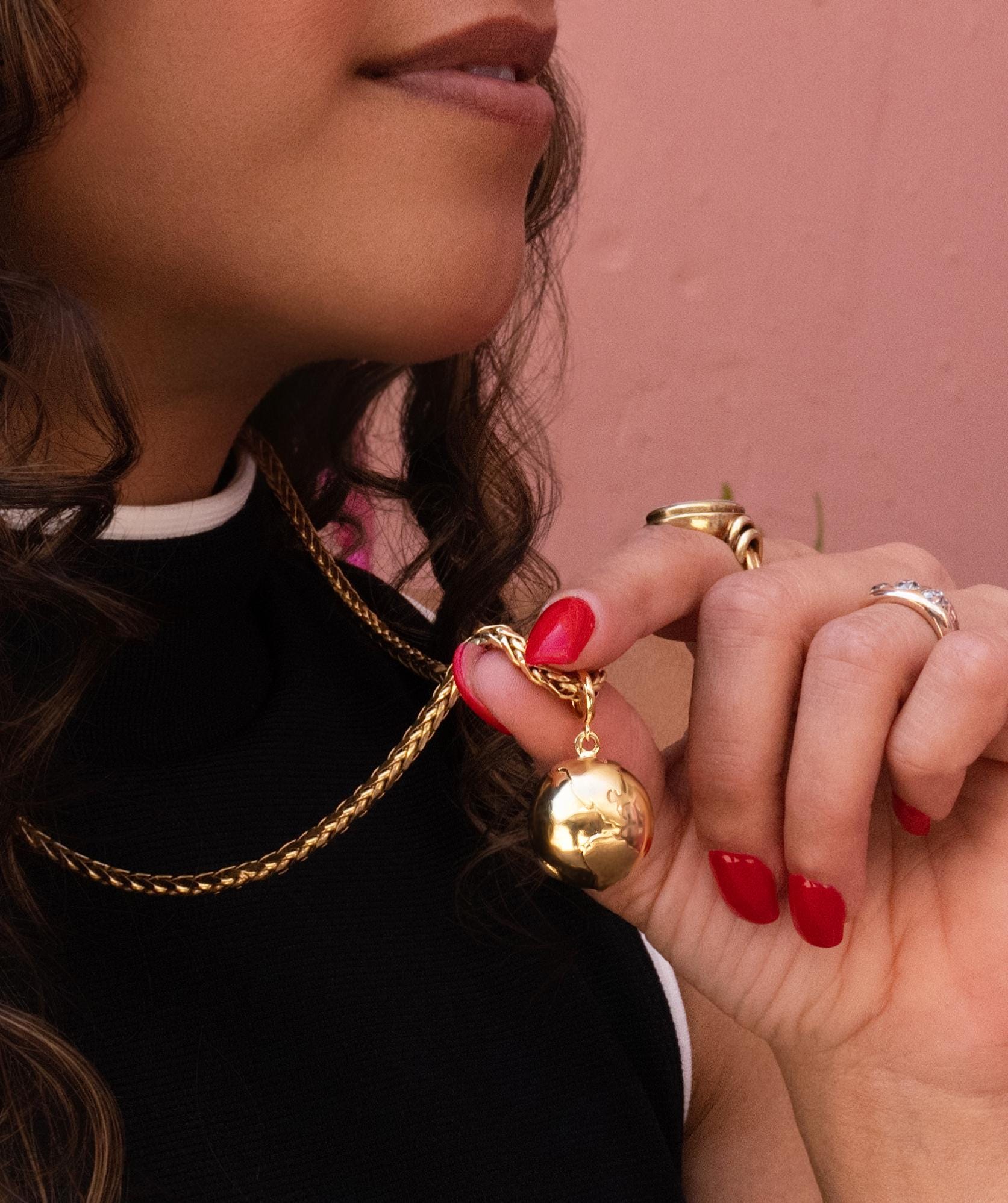 VINTAGE Globe Pendant made in 14K Yellow Gold. This unique, whimsical pendant measures approximately 21 mm wide and features a large bail that will accommodate any chain. Chain sold separately.