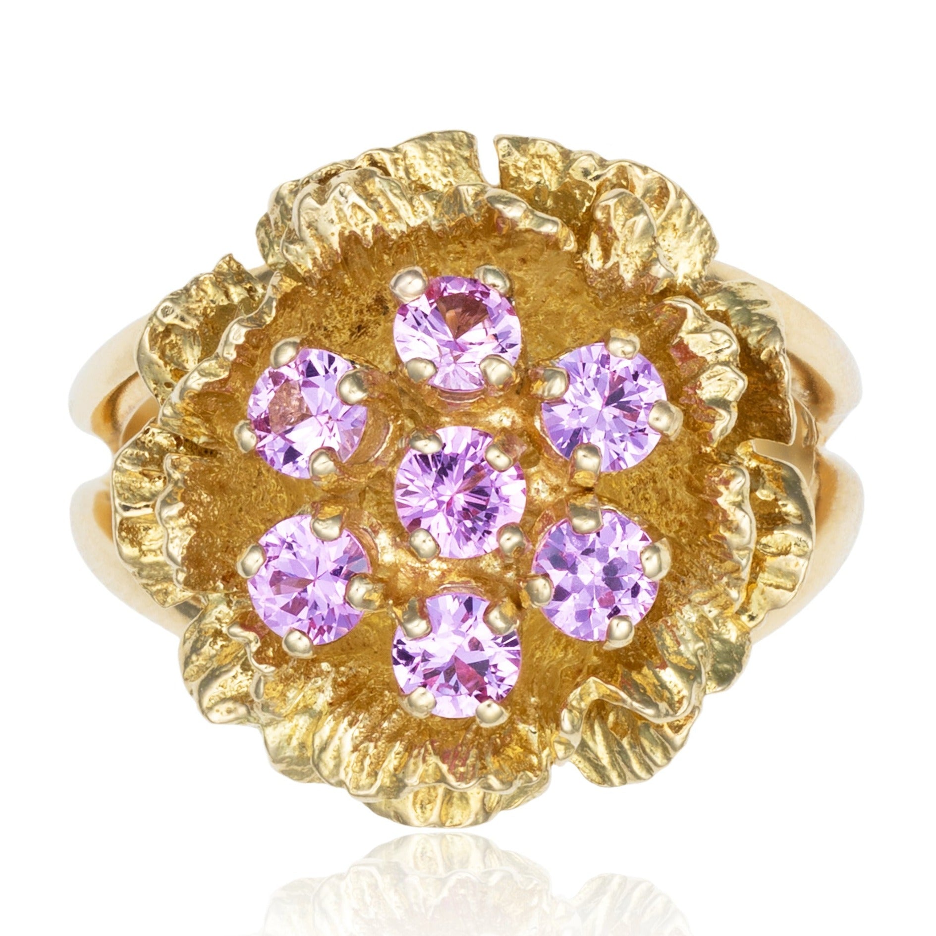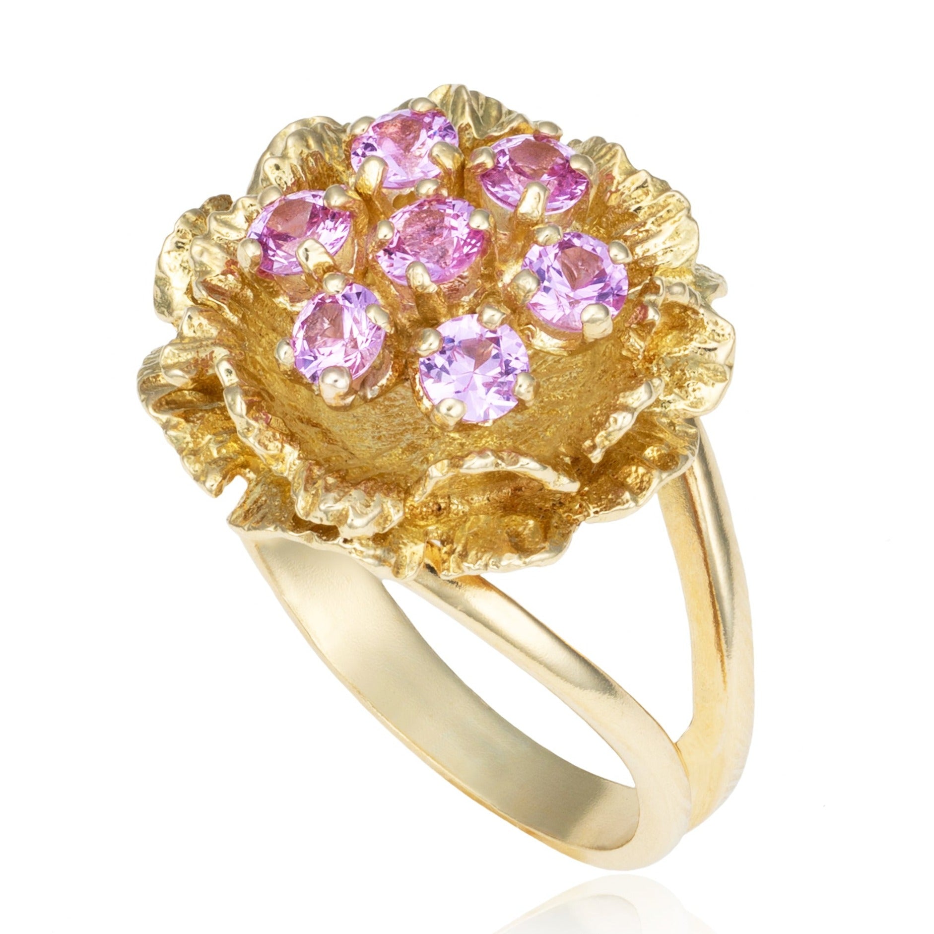 Pink Sapphire Rose Cocktail Ring in 18K Yellow Gold